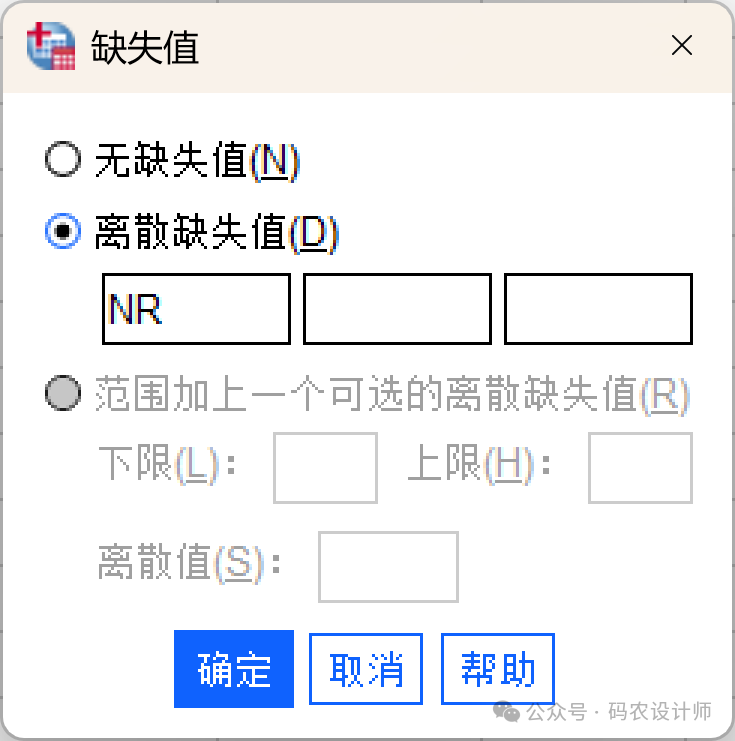 • ③、定义空值为缺失:若要将空值或空字符串定义为缺失,可在输入框中输入一个空格。