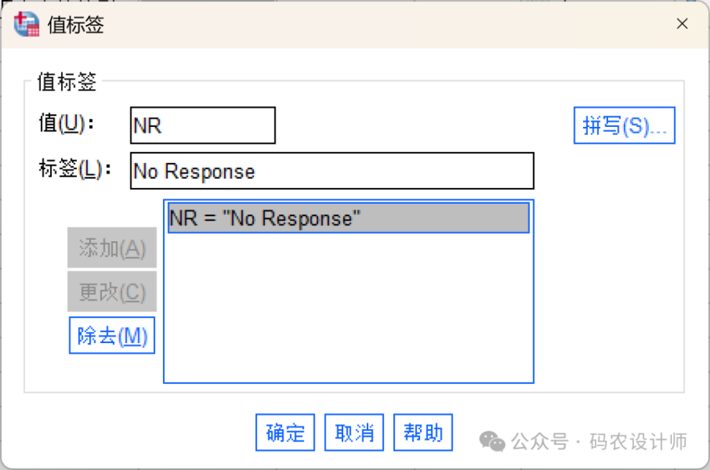 完成以上设置后,也可以为其添加值标签,以便清晰地辨别哪些字符串表示缺失。